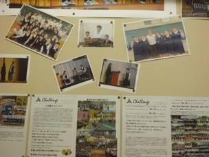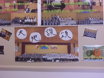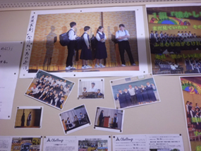 3年生の教室がある4階廊下には、先日行われた文化祭の様子が掲示されています。