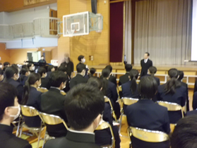 2026年3月11日 13時06分本日4時間目、篠原康展校長先生による、中学校最後の道徳の授業が体育館で行われました。三年生全員を対象にした学年道徳です。