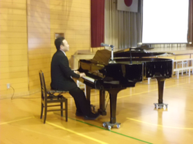 最後に校長先生からのサプライズ、長渕剛の「乾杯」のピアノの弾き語りがプレゼントされました。この何日か、早朝に音楽室からピアノの練習の音が聞こえてきた、そのわけが分かりました。生徒たちは感動の面持ちで聞き入っていました。
